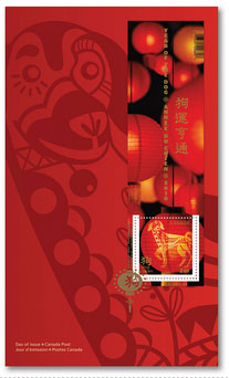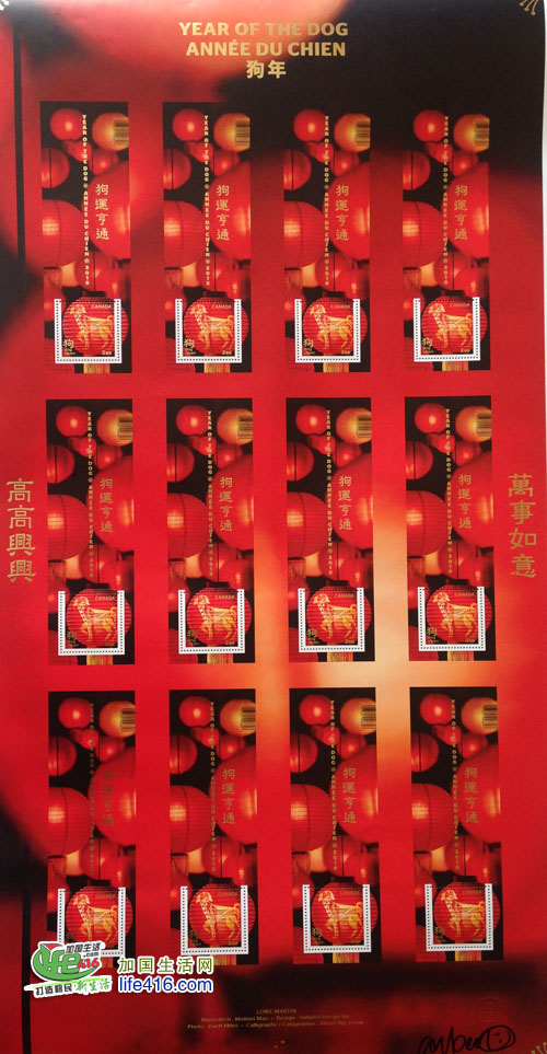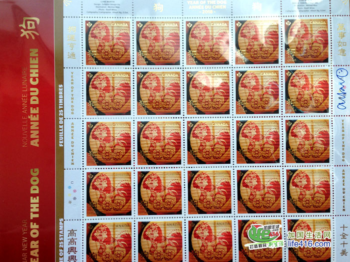这是加拿大国际邮资的狗年生肖邮票,单张$2.5