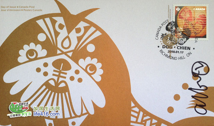 【加国生活网专稿】加拿大邮局(Canada Post)于2018年1月15日正式发行2018年狗年生肖邮票,1月17日,加拿大邮局在大多伦多地区的烈治文山邮政局(Richmond Hill Post Office)举行狗年生肖邮票发行活动,吸引了众多集邮爱好者。
