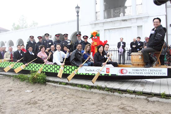 多伦多华商会会长张小惠及龙舟节主席黄家康,带领各赞助商及三级政府代表、纪律部队代表,为龙舟节揭开序幕