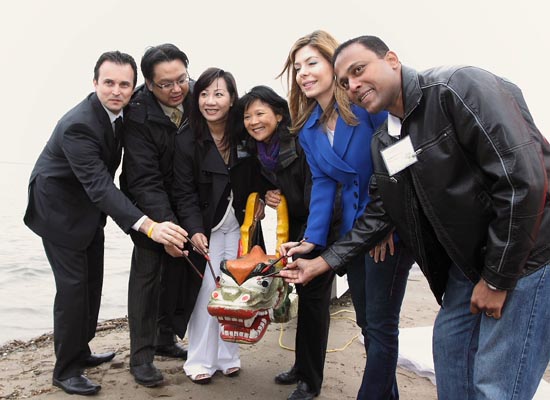 点睛仪式:( 左至右)Loblaw 集团的族裔市场推广副总裁 Joe Spagnuolo 龙舟节主席黄家康,多伦多华商会会长张小惠,国会议员邹至蕙,国会议员Eve Adams,Loblaw 集团的族裔市场高级经理Antonio Fernandes