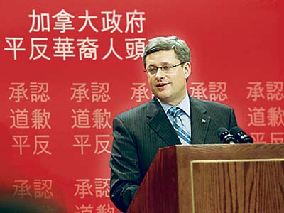 加拿大政府宣布从1971年开始实行多元民族、多元文化政策。1986年,加拿大政府向二战时被关进集中营的日裔移民道歉并赔偿2.91亿加元,又向财产被没收的意大利裔移民道歉。2006年6月22日,加拿大总理哈珀在众议院举行仪式,就严重歧视华人的“人头税”政策和《排华法案》,向全加华人正式道歉。这距离1885年7月加众议院通过《华人入境条例》决定对华人开征“人头税”已有121年,距离1923年7月“人头税”停征,更加苛刻的《排华法案》生效也已83年,可谓“迟到的道歉”。