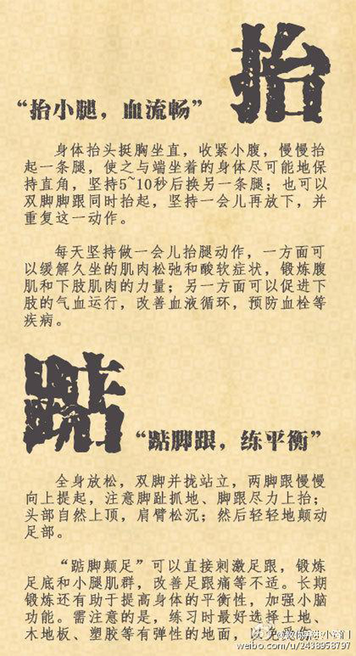 对中医来说,人体经络就像纵横交错的交通网,联系脏腑、沟通气血、抗御病邪。但久坐不动、缺乏锻炼等生活方式,却让气血频繁遭遇“红灯”,招来病痛。不妨试试以下12个保健小动作,让你气血畅通,身体棒!