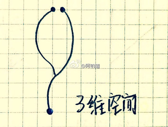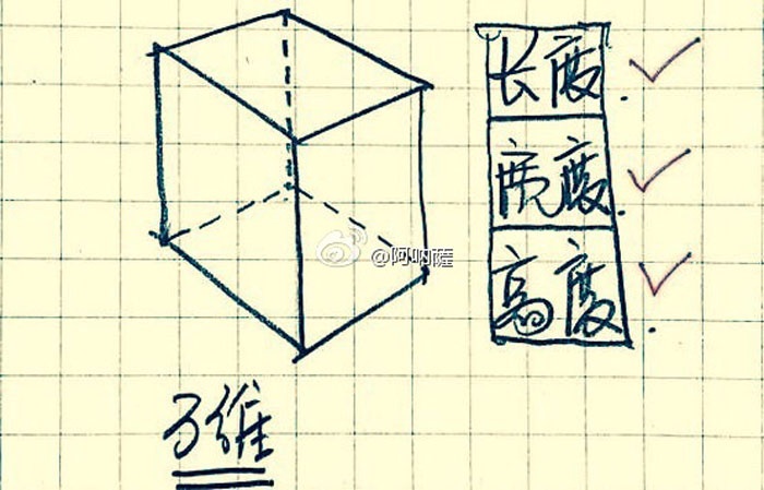 前三个维度我们可以简单理解成长、宽、高。那么我们怎么理解四维空间?