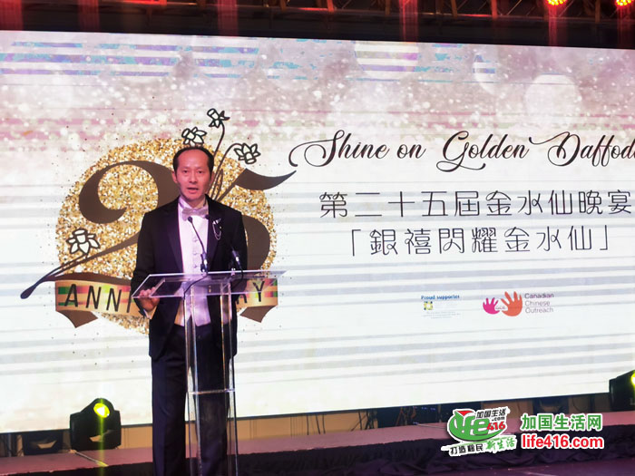 晚宴共同主席陈伟才先生表示,此慈善餐舞会始于1998年,一群热心华人于社区发起为加拿大防癌协会筹募经费,用作对癌病研究及知识推广等事宜。过去24届来共筹得超过370万。是届晚宴主题为《银禧闪耀金水仙》。出席嘉宾近四百人,场面热闹。陈伟才衷心感谢YOUnity、多名义工及强大的团队诚心协力的合作,亦感谢出席的嘉宾莅临支持。
