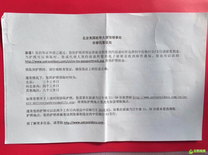 随后,她回头在桌子上拿了张单子递给我,我还没反应过来,看了下那纸上写的恭喜你已经通过啥的,看了她一眼“OK?”她点点头示意结束了,就叫下一位。整个过程也就十几秒,只有开头叫“下一位”的时候扫了我一眼,之后再没正眼看过我,全程语速都很快,问题都是紧接着问的毫无空隙,甚至可以说是我还没有回答完的时候她就开口问下一句了,也没问我要任何资料。大家可能注意到她问了我2次在哪上班的问题,我觉得一是因为我2天前刚从日本回来,且是一个半月内去了2次日本,马上又来面试美国,她可能对我的工作或假期有怀疑。第二就是其实她根本不在乎我在哪工作,只是想看我回答的反应是否自然、流利,两次回答是否一致,因为她那种速度根本记不住我说的什么,我说的那么快,估计她也来不及看资料上的那一大串中文公司名。 我本以为会问我为什么一个人来面试,还带了个已经有美国签证的朋友的护照复印件,说到时候和她一起去,结果也没问这些。实质上这个面试官只问了我两个七大姑八大姨的问题,“有工作吗”和“生二胎吗”,核心内容其实还是围绕着能否按期回国,和会不会去美国生孩子。
