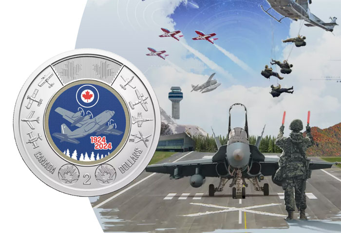 在这枚特殊的2加元硬币上描绘的是加拿大皇家空军的飞机,这些飞机在加拿大和世界各地发挥着重要作用。
