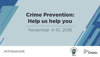 【加国生活网】安大略省的“年度罪案预防周”于2018年11月4日至10日举行。安省所有警察局,与安大略省社区安全和惩教服务部以及安大略省警察局长协会(OACP)一起,面向各个社区并与各地政府、企业和社团合作,宣传罪案预防的重要性,以使各个社区更安全、更健康。