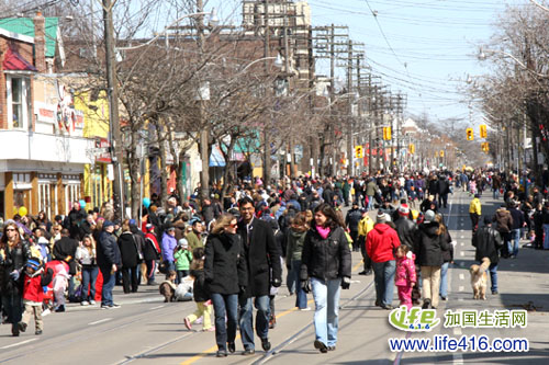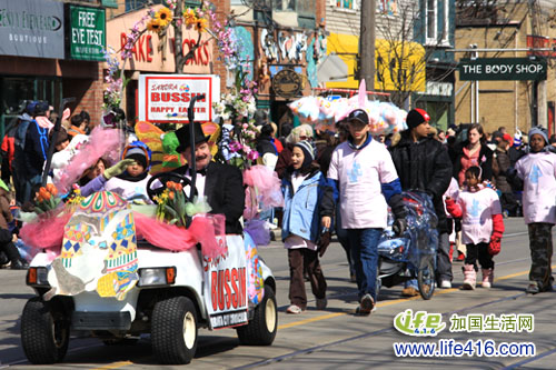 【加国生活网】2012年4月8日星期日Easter Sunday,由Toronto Beaches Lions 主办的每年一度的复活节大游行如期在Queen East 举行。这个号称加拿大最大型的复活节大游行每年都吸引了5万多人前来观看,今年也不例外。看看街边的这些人,看看街上现在玩闹的孩子们,一眼望不到边哟。