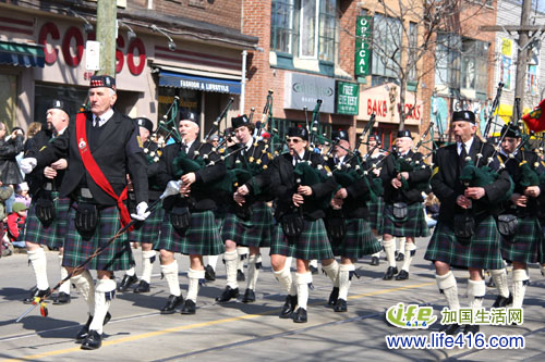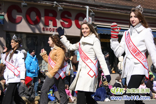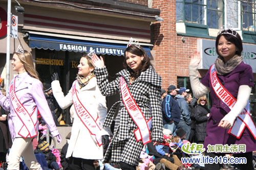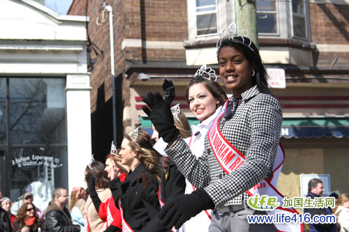 多伦多市民们站在Queen街两边,看着游行队伍热热闹闹地从眼前经过。