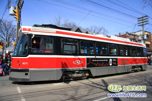 这是多伦多目前正在使用的Street Car,也就是国内的有轨电车