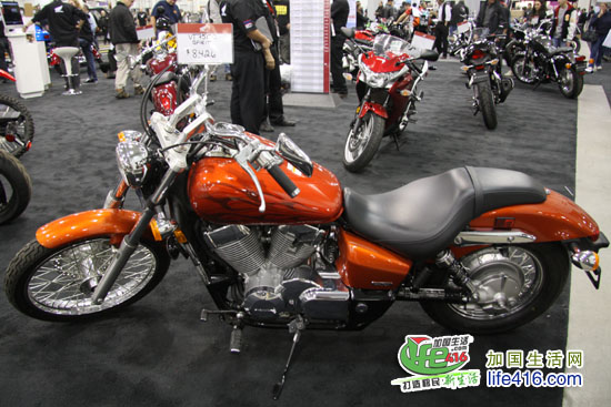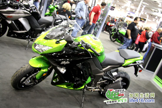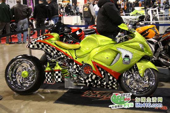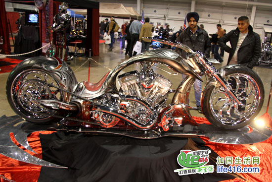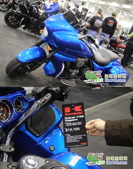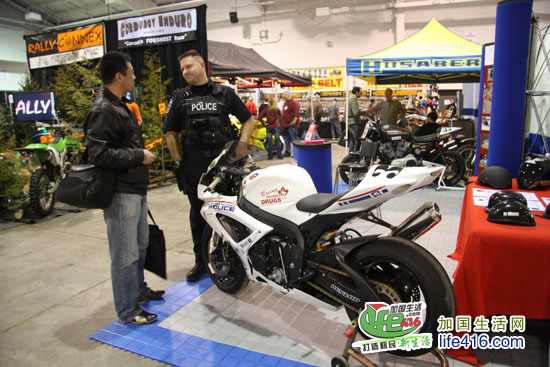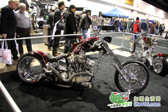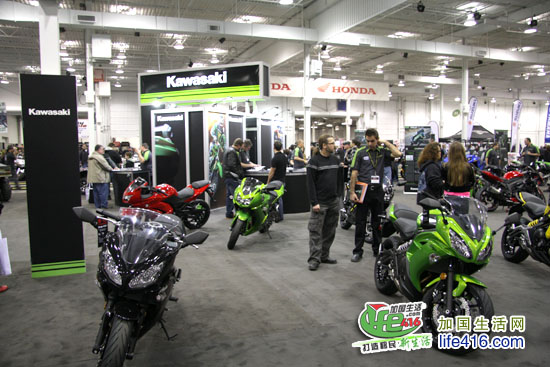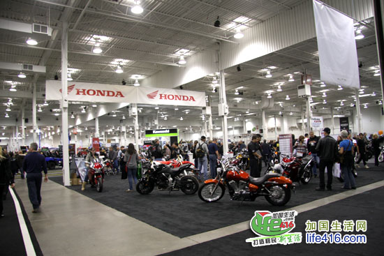 这个灯火辉煌、人最多的展厅当然是卖摩托车的展厅了,加拿大几个著名的摩托车品牌全部集中于此。