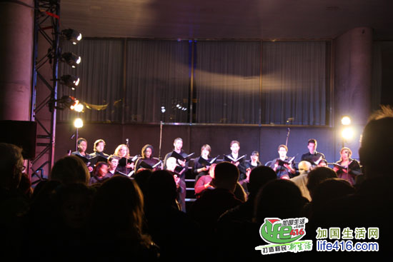 在市政府广场的一角正在举行音乐会,这是合唱团正在演唱。