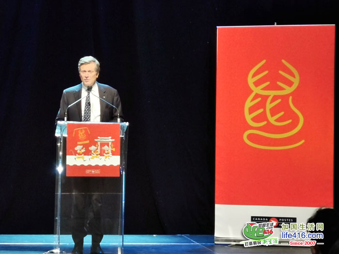多伦多市长John Tory致辞,他说鼠年邮票的发行为彰显了加拿大多元文化特色,看中文的“鼠”字有个很长的“尾巴”,听说寓意是长寿,那就祝大家鼠年幸福、长命百岁。