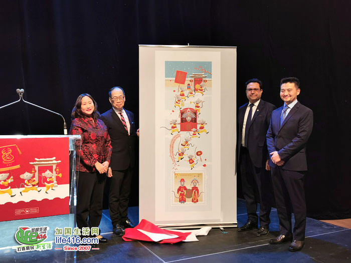 【加国生活网专稿】加拿大邮局(Canada Post)于2020年1月17日正式发行鼠年生肖邮票,并于1月16日在大多伦多文化中心举行了鼠年生肖邮票发行活动。鼠年生肖邮票采用了中国民间故事“老鼠嫁女”的热闹场面,加拿大邮局期盼与所有华人朋友同贺鼠年!新春快乐!
