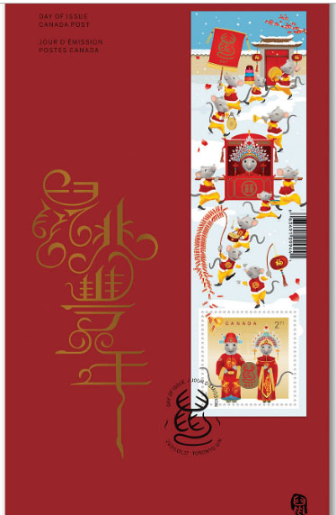 【加国生活网专稿】加拿大邮局(Canada Post)于2020年1月17日正式发行鼠年生肖邮票,并于1月16日在大多伦多文化中心举行了鼠年生肖邮票发行活动。鼠年生肖邮票采用了中国民间故事“老鼠嫁女”的热闹场面,加拿大邮局期盼与所有华人朋友同贺鼠年!新春快乐!