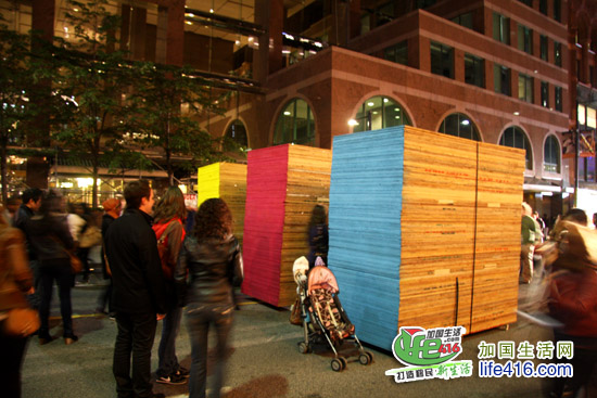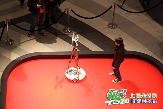 在Eaton Center 里的这个艺术项目是Paparazzi Bots,这是一个机器人参与的项目,通过捕捉人的面貌和身高和识别人类,并向人类靠近。