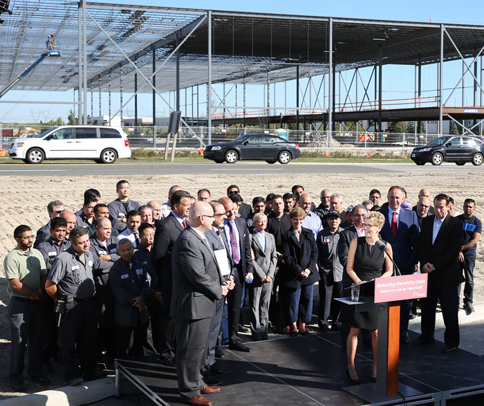 安省省长韦恩今早探访旺市一家大型制造厂,并在厂房户外详细介绍《2016年安省电力用户回扣法》对商界所产生的好处。