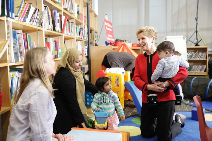 韦恩省长于3月27日探访了位于多伦多的Nelson Mandela Park Public School,同时作出了上述地宣布。她表示,省府将于未来3年内全新拨款22亿元来推行这个项目,以便安省家庭在面对经济转变的状况下,减轻他们在育儿方面的开支负担。陪同她一道的有安省财政厅厅长苏善民(Charles Sousa)及教育厅兼早期儿童教育厅厅长纳兰杜(Indira Naidoo-Harris)。