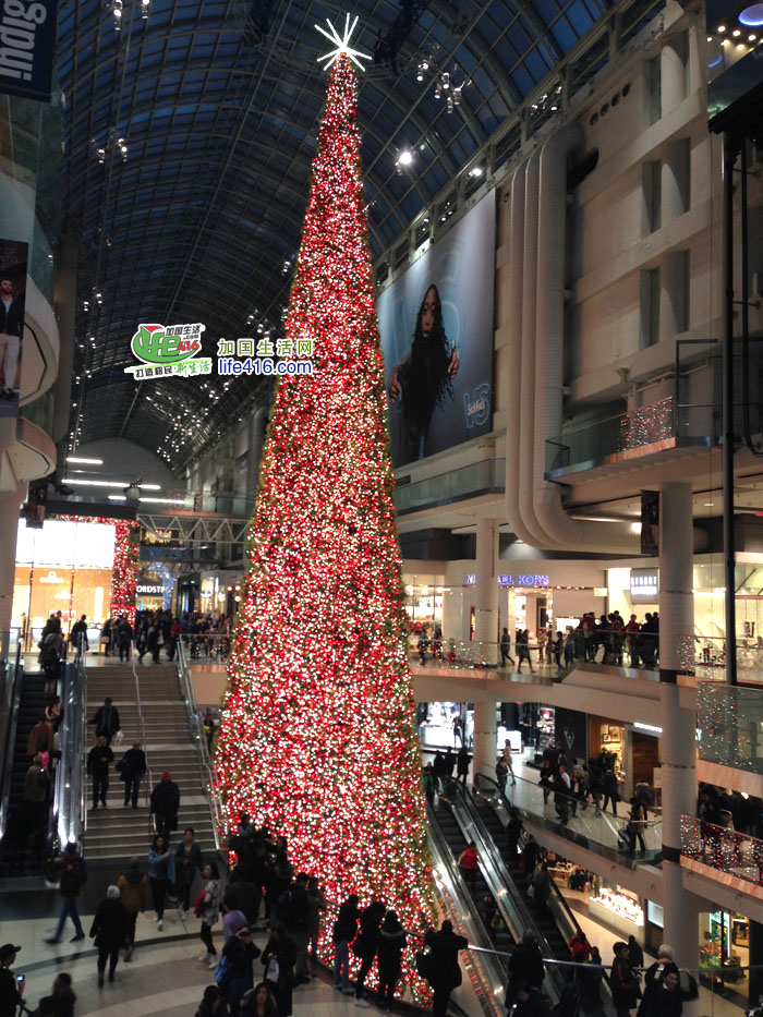 小编最新爆料:Toronto Eaton Center新增了一个超级漂亮的圣诞树,看下面的组图: