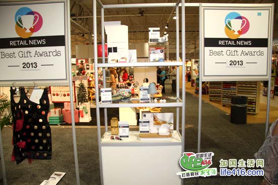 每年前来参加多伦多礼品展的企业,都会把他们的最新产品送到主办方,参加由《 Retail News 》杂志评选出的当年度的Best Gift Award 最佳礼品大奖。由于产品众多,该奖项又按照以下八个类别分设不同的大奖:Body & Soul 、For the Home 家居、Kitchen & Table 厨房餐桌、Jewellery & Fashion 珠宝及时尚、Novelty 新奇设计、Kids 儿童、Pets 宠物和the Best Design Innovation award 最佳设计创新奖。评审团根据产品的功能、质量、市场潜力和设计美学等各项因素,从各个类别的产品中选出该类别的最佳产品。