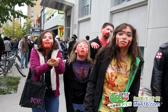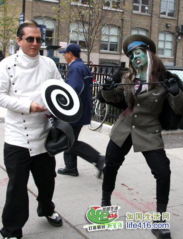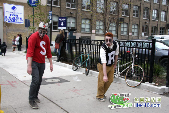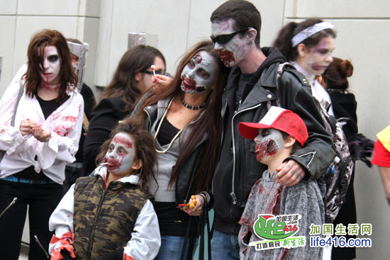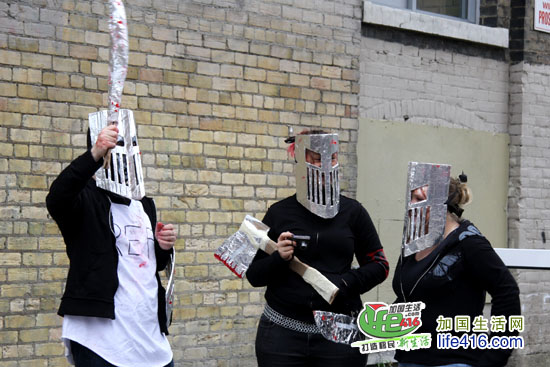 看看这一组创意,他们的打扮唯一的好处就是不用往脸上涂太多的东西。好在,那把刀是用锡纸做的,否则警察就会找他们了,呵呵,僵尸游行禁止携带武器哟。