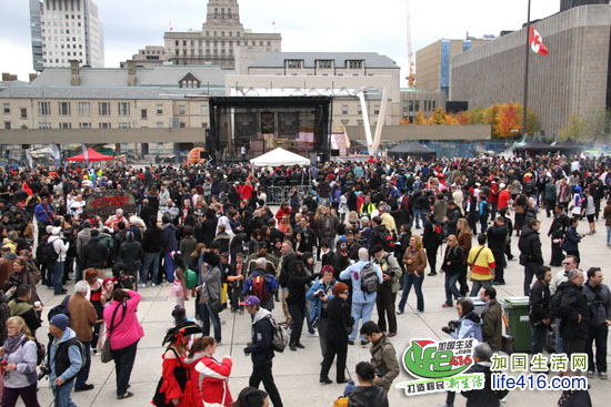 下午2点左右,加国生活网小编来到活动现场,发现黑压压一片僵尸正“占据”着市政府广场……