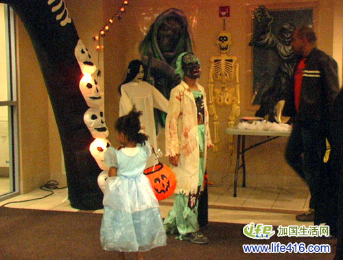 大堂里热闹非凡,“Trick or Treat”不绝于耳。今天是万圣节,今晚我们所住的公寓把大堂布置了一番,集中在这里迎接来自邻近社区小朋友们的“Trick or Treat”。