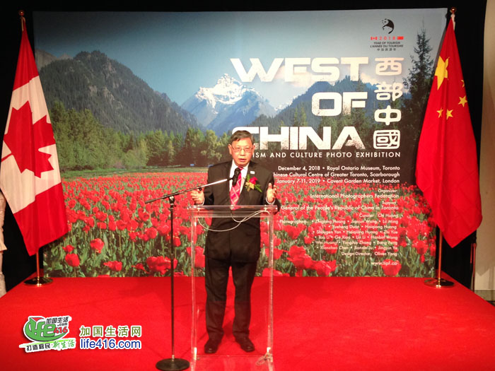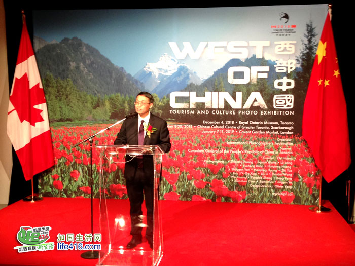 【加国生活网】由中国驻多伦多总领馆与国际摄影师联盟(International Photographers Federation, IPF)联合主办的“西部中国”摄影展于2018年12月4日在加拿大皇家安大略博物馆(ROM)正式开展。中国驻多伦多总领事韩涛,加拿大安大略省省议员柯文彬、彭锦威、萨巴维(Sheref Sabawy),列治文山市市议员陈志辉,安大略省礼宾司副司长索维(Jonathan Sauve),多伦多市礼宾处处长萨利文(Barbara Sullivan),IPF主席黄池,参展摄影师代表黄志强,及当地各界主流人士、华侨华人、留学生代表等约150人参加。