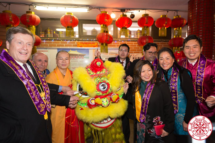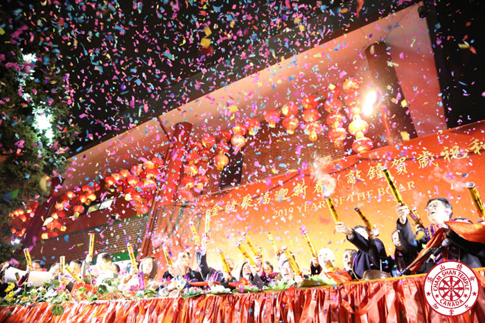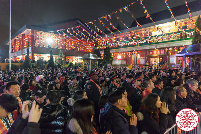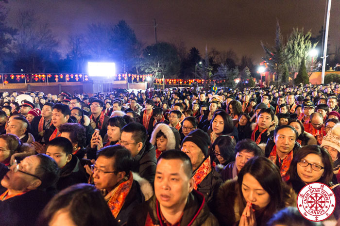 加拿大佛教会会长、湛山精舍住持达义大和尚带领四众弟子除夕普佛,诵经祈福,拉开了庆祝中国新年的序幕。大和尚为信众开示《心经》,启迪智慧,这一传统已经延续了半个世纪。湛山精舍深厚的佛教文化传统和浓郁的中国年味道,吸引了成千上万的华人和其他族裔的人群。人群中既有耄耋长者,也有幼童少年,既有华夏子孙,也有其他族裔。