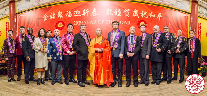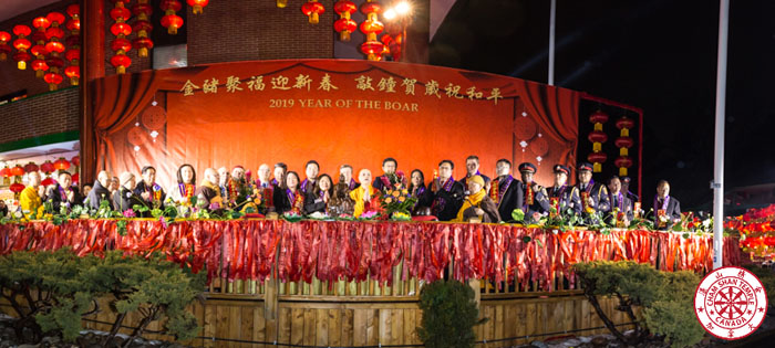 【加国生活网】春风融雪,华灯映红。经历了寒冬之后,加拿大迎来了“立春”,预示着猪年的新气象。加拿大多伦多东北部湾景大街车水马龙,熙来攘往。加拿大佛教会湛山精舍正在这里举行盛大的庆祝“金猪聚福”系列活动,大众齐来湛山上头柱香、许愿、敲钟、点平安灯、参加庙会、接福迎新。从2月4日除夕一直到2月5日大年初一,有近万人先后来到这里,与加中两国政要、侨界、商界、学界、媒体界等各界名流精英一起迎接猪年的到来。