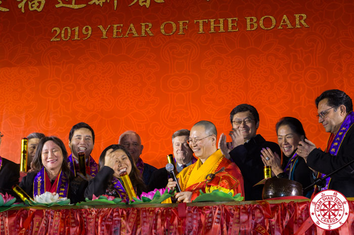 加拿大佛教会会长、湛山精舍住持达义大和尚在向全体华人和加拿大人送上了新春祝福。他说:“大家都知道2019年是猪年,众所周知猪代表富足、诚实、和平、慷慨、好脾气。