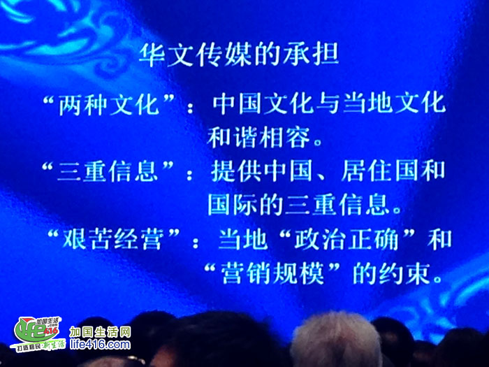赵启正的演讲相当精彩,现场不时爆发阵阵掌声。我感觉他的总结相当地到位,华文传媒的担当确实是应该做到把中国文化和当地文化和谐相容。