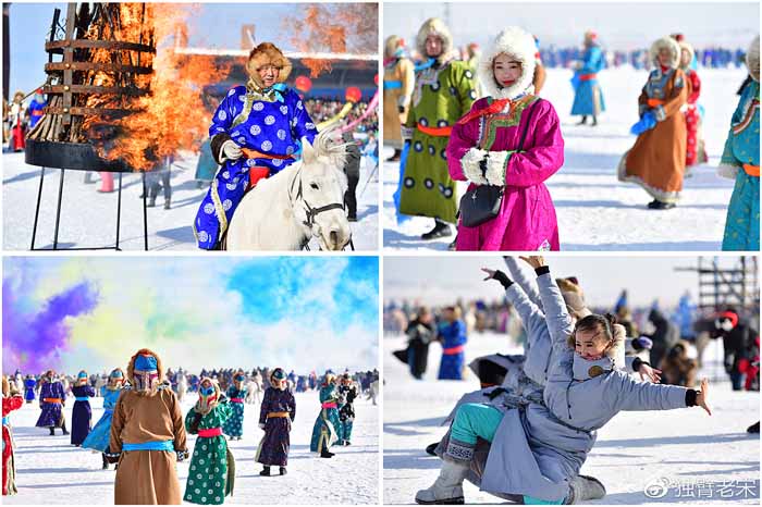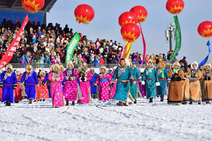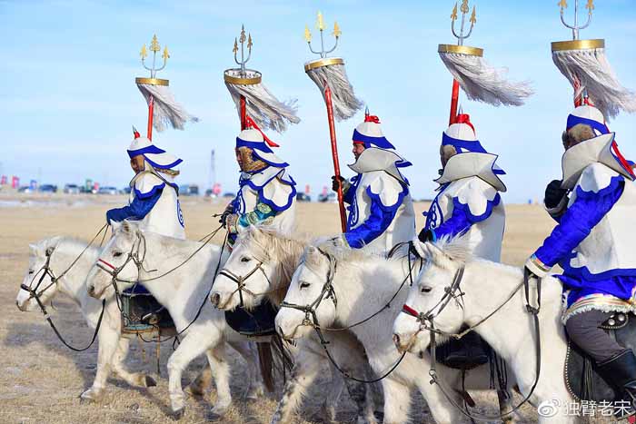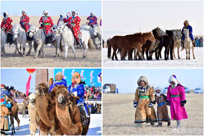 这是一个寒风刺骨的冬天,零下20度,来苍狼故地西乌旗参加一场牧马风驰的冰雪那达慕,黄沙飞扬、冰风如刀,没什么能阻挡蒙古人内心的激情澎湃,随着国歌声起,冬季西乌珠穆沁旗银色冰雪那达慕正式开启,人们身着传统蒙古族节日盛装步入会场,用靓丽的色彩为冬日的牧场涂抹出一幅绚丽的草原画卷。