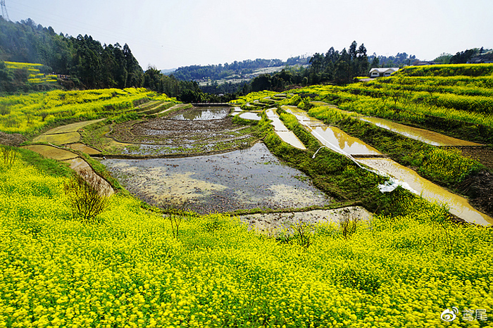 菜子坝是油菜花梯田,非常有层次。小火车在这里是一个巨型的C字转弯。很壮观。可惜这一站观光小火车上行不会停,下行要看是否错车而临时停车。有时候乘务员也会允许大家下车到花田里拍拍照。附近还有很大一片白色李花,也很漂亮。