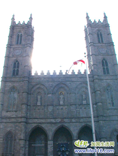 【加国生活网专稿】参观完圣约瑟夫教堂,旅游大巴带着我们急着往山下赶,下一个景点是诺特丹圣母大教堂(Basilique Notre-Dame),这个教堂建于1829年,是蒙特利尔的旧城区最著名的观光景点,也是北美最大的教堂。这座新哥德式的天主教堂可容纳5,000人,教堂的双塔高近70公尺,西边的塔上还挂有北美最古老的巨大时钟。教堂的建筑风格与巴黎的圣母院教堂可称为姊妹篇,并以其内部金壁辉煌的装饰与收藏的众多艺术品而成为北美最受瞩目的教堂建筑之一。
