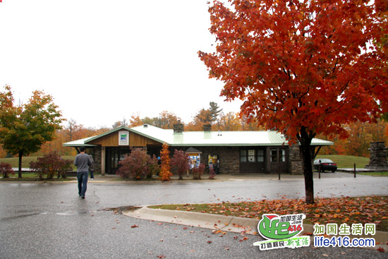 当你看到有一展大旗在高高飘扬的时候,阿冈昆公园的西门就到了。这是西门的问讯处。