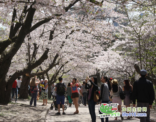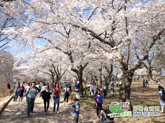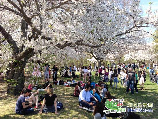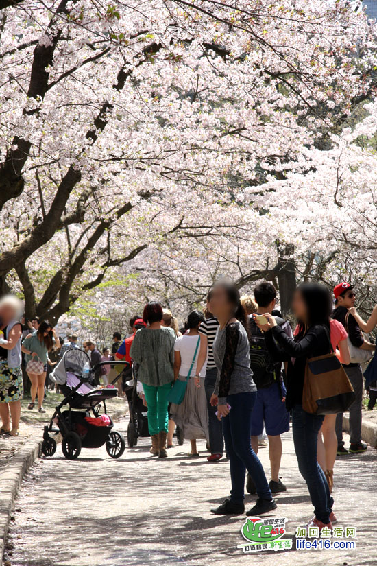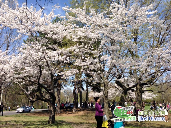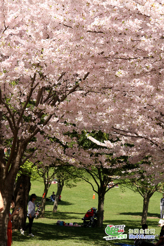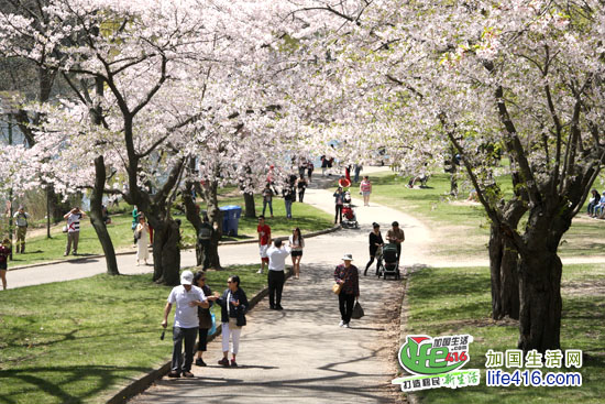 【加国生活网】2012年多伦多High Park 樱花情报:2012年4月14日星期六,High Park 的樱花已经怒放了。小编就不多说了,直接上照片,大家一起欣赏樱花美景吧。另外,小编提醒大家,由于去看樱花的人特别多,许多人都是开车来的,大家都在四处找着车位,有些人找不到的就干脆停到了自行车道上。小编回家的时候,看到警察在抄牌,所有没有停在停车场(即所有停在路边或自行车道)上的车全部被贴罚款黄条了。所以大家不有要从众心理,看到别人停你也停哟。其实多伦多东西向的地铁在High Park 有一站,坐TTC 很方便的。周末的时候买张Day Pass,$10.5全天全家(二个大小+四个孩子)任意坐TTC。