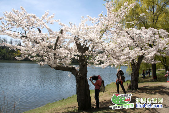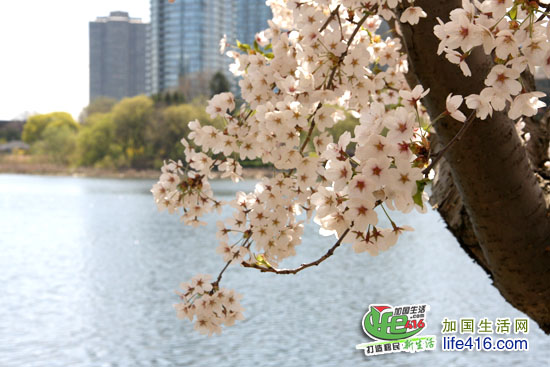 2012 年4月8日星期日:加国生活网小编前往多伦多High Park 公园查看樱花开放情况:公园内仅有一二棵樱花树全部开放,而靠近湖边的那片樱花树林仅开放50-60%。如果以后三四天不下雨、气温还是在十几度的话,估计这个周末(2012年4月13日至15日)樱花能全部盛开。
