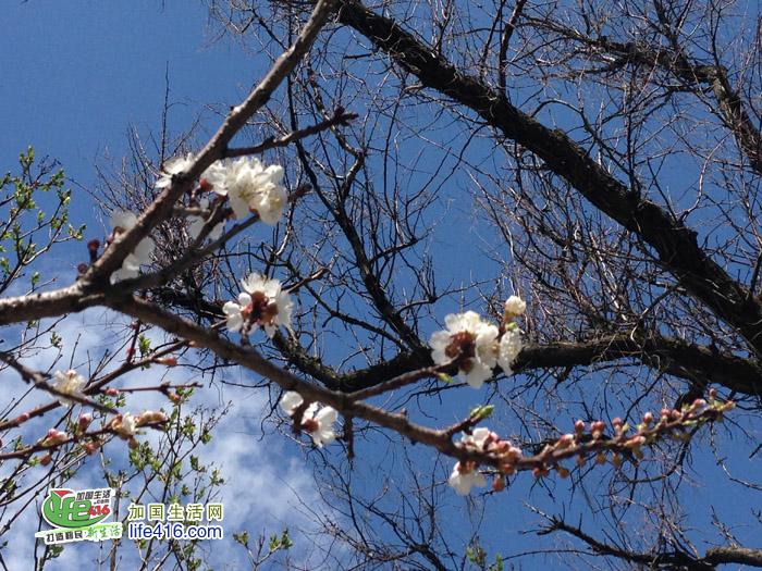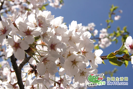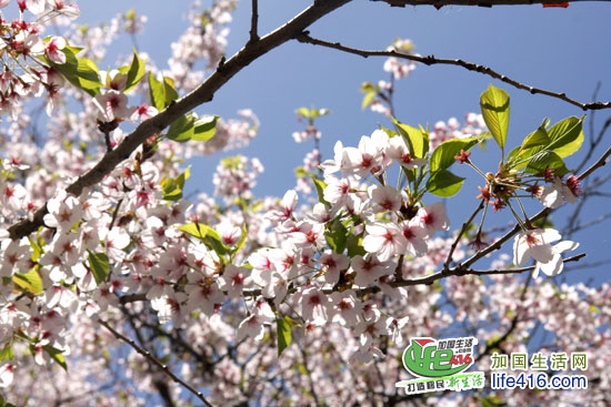 2013年4月30日:据high park官方微博报道,4月30日的樱花已经能够看到花的雏形了,公园方面称樱花已经开了0.05%。这三天这么暖和,有粉丝说已经拍到公园内开花的樱花了,小编估计樱花能开到10%了吧,如果你着急的话,这个周末或许能够看到部分樱花,全部怒放应该要等到下周。另外,多伦多大学Robarts Library的西南面的一片樱花树正在怒放,而稍微西一些的HIGH PARK里的樱花明显是晚了半拍的样子,小编想这可能多大更南更温暖一些的原因吧,呵呵。