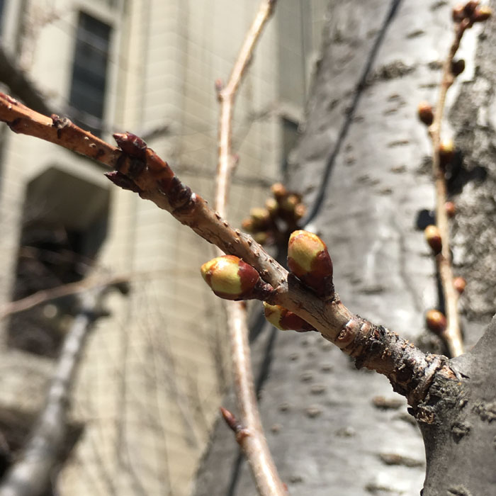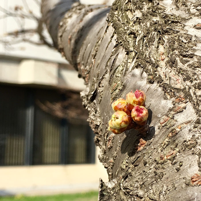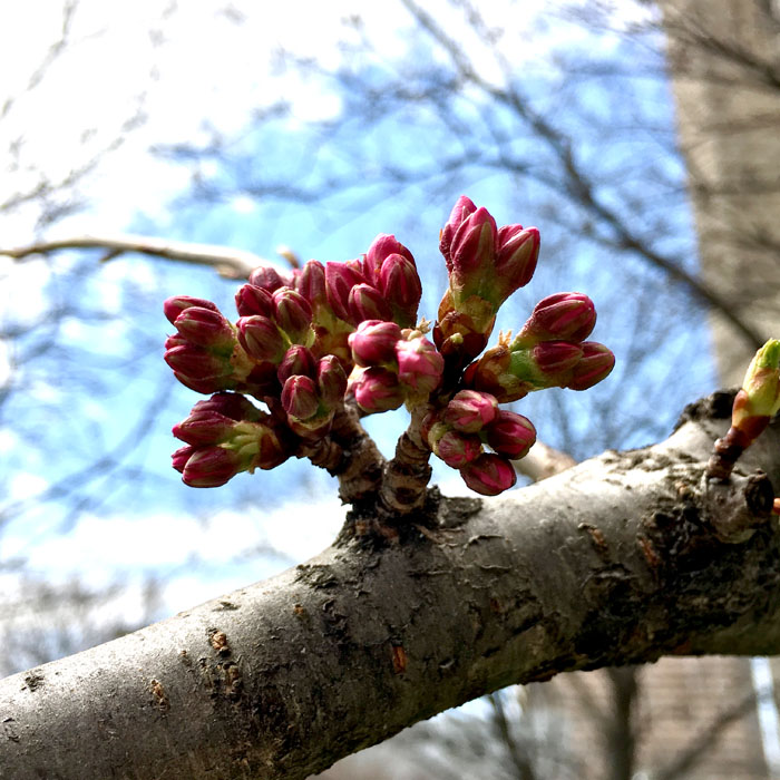 那么冷的天气里樱花们正在积聚着能量,蓄势待发呢。(图片来源:High Park 樱花facebook)