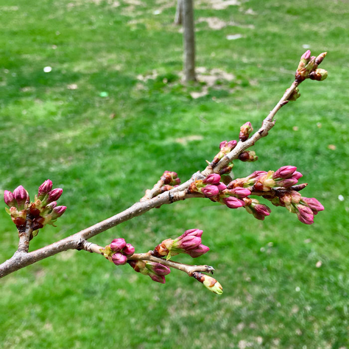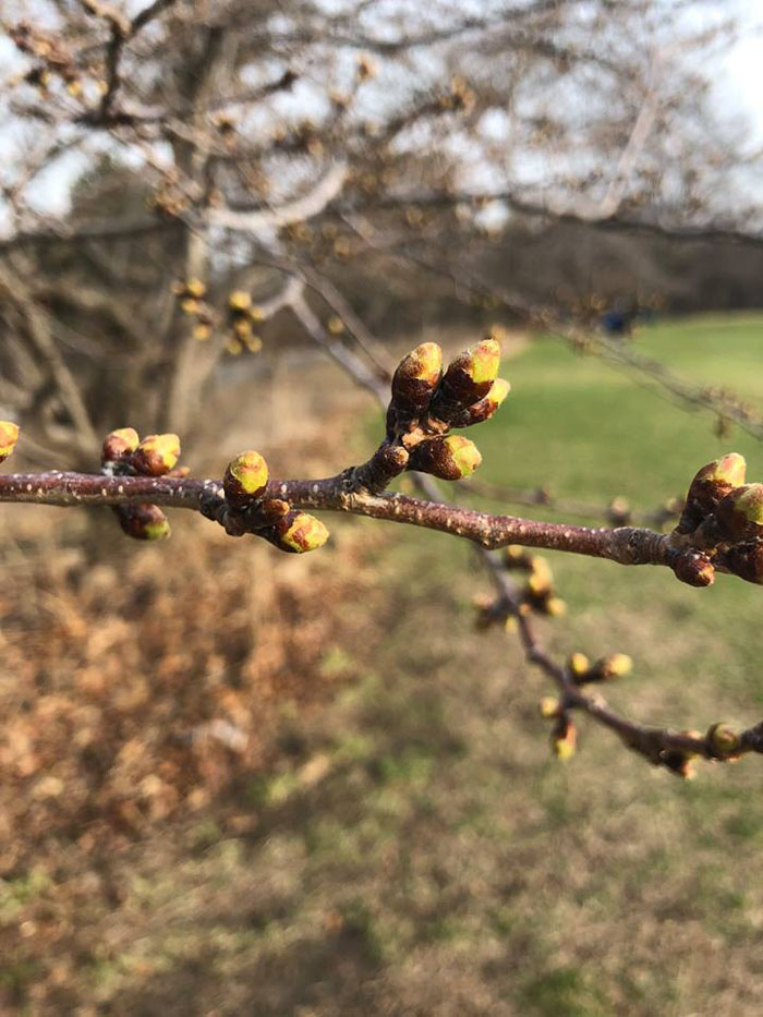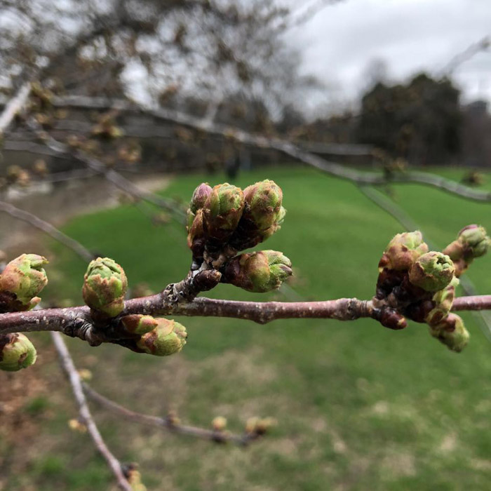 2025年4月7日:截至2025年4月7日,High Park 的樱花正处于开花发育过程的第一阶段。大多数花蕾看起来又肥又圆、又健康又翠绿 —— 这是樱花们即将到来的第一个迹象。现在还不能确切预测樱花何时能盛开,每年通常在4月下旬至5月上旬达到盛开高峰。