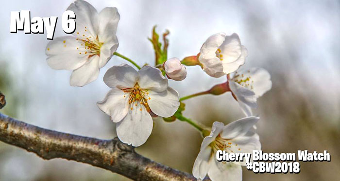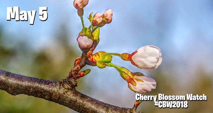 2022年5月4日:截止5月4日,樱花处于开花发展过程的第5阶段。此时大约已经有40-50%的花朵开放。当至少70%的花朵开放时,多伦多High Park公园才会宣布达到开花高峰。