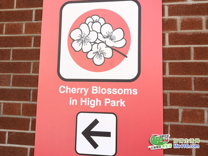 小编坐地铁二号线西向线(Westbound)一直坐到High Park下车,从地铁车厢出来走到检票口时,就看到几个义工举着大牌子,大牌子上有樱花的标志还有箭头,指示大家往哪个方向走。矮油,小编的第一感觉就是多伦多High Park公园这次很贴心啊,就算你是第一次到High Park,也不用担心找不到了。