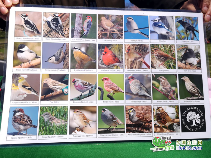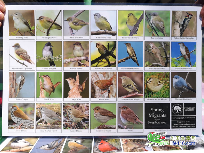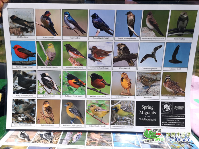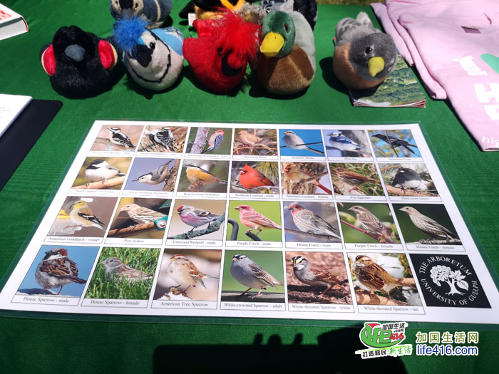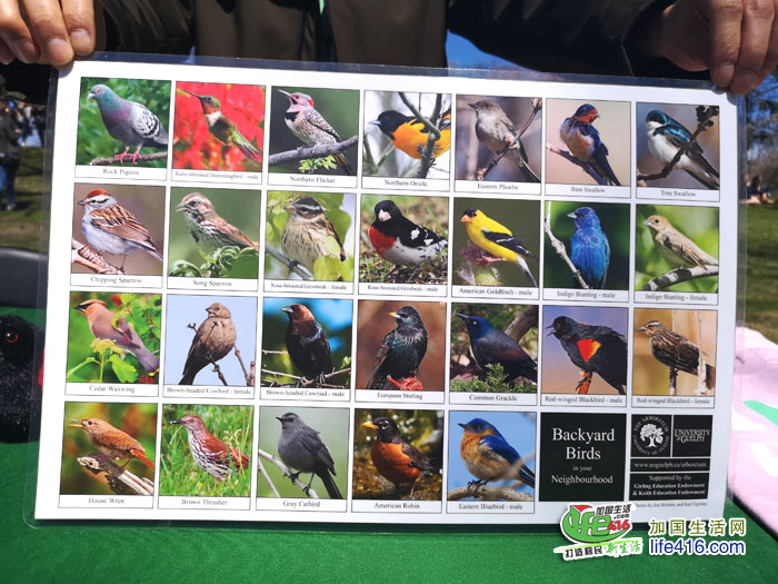拍完樱花照片,小编来到樱花树林中间的一个公园管理处的摊位,公园的几位工作人员正在介绍公园里的鸟类(翼星人哟)。令人惊讶的是,High Park里的鸟类竟然有上百种: