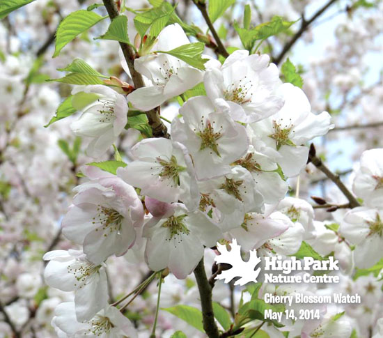 2014年5月13日:High Park 樱花已经有25%盛开了,不过星期二到星期四的阵雨对樱花是个严峻的考验,希望花儿们要坚强,不要被打落得太多啊。另外,5月15日星期四4-7pm、5月16日星期五4-7pm以及5月18日星期日9am-4pm这三天,Toronto Parks and Trees 将派向导带领游客们欣赏怒放的栅花,并介绍High Park的樱花历史和野生动植物情况,每次导游时间是30分钟左右,不需要提前预约,每人费用$2,欢迎全家参加。出发地点就在 top of Cherry Blossom Hill, near the Grenadier Cafe,那里有专人负责安排出发时间,请到那里询问每个团的出发时间。详情请点击这里。