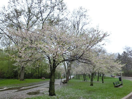 2014年5月16日:告诉大家一个坏消息,昨天有好几个去High Park 看樱花的网友反馈,那里的樱花被雨水打得七零八落的了,已经没啥可看的了。High Park 官方Facebook 也称,由于今年春天的寒冷多雨天气让樱花的“寿命”变得很短,再加上这一周接连几场大雨,樱花们都纷纷掉落了。不过,如果你想在长周末到户外走走的话,到High Park 来呼吸一下新鲜空气,欣赏一下“花谢花飞花满天”的场景吧。