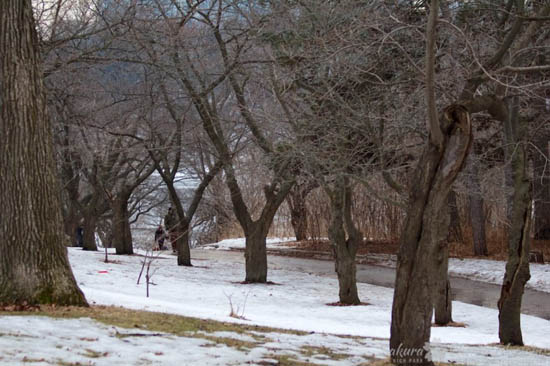 湖边的那片樱花树林还是白雪皑皑的呢!(图片来源:High Park 樱花网站)