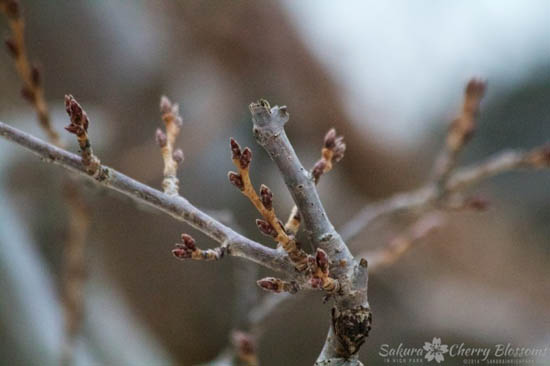 那么冷的天气里樱花们正在积聚着能量,蓄势待发呢。(图片来源:High Park 樱花facebook)