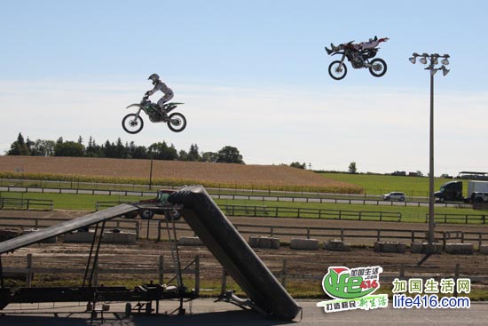 加国生活网小编用连拍的方式拍下了这样的瞬间,漂亮吧,刺激哟。要知道,表演者和摩托车在空中这种造型绝对不是一天两天就能练出来的……