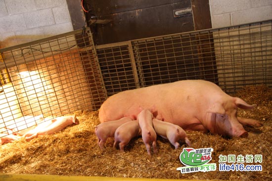 猪真的是吃了睡睡了再吃的动物。看到左边边正在睡觉的猪宝宝们了吧,睡醒了,就跑到妈妈肚子下面吃奶,吃饱了再跑到旁边继续睡。看来,天底下的猪的秉性都是一样的,加拿大猪场养的猪也是养肥后供人们吃的。许多人都反应加拿大的猪肉不好吃,比较腥,这主要是因为加拿大猪场杀猪的时候不放血的原因。